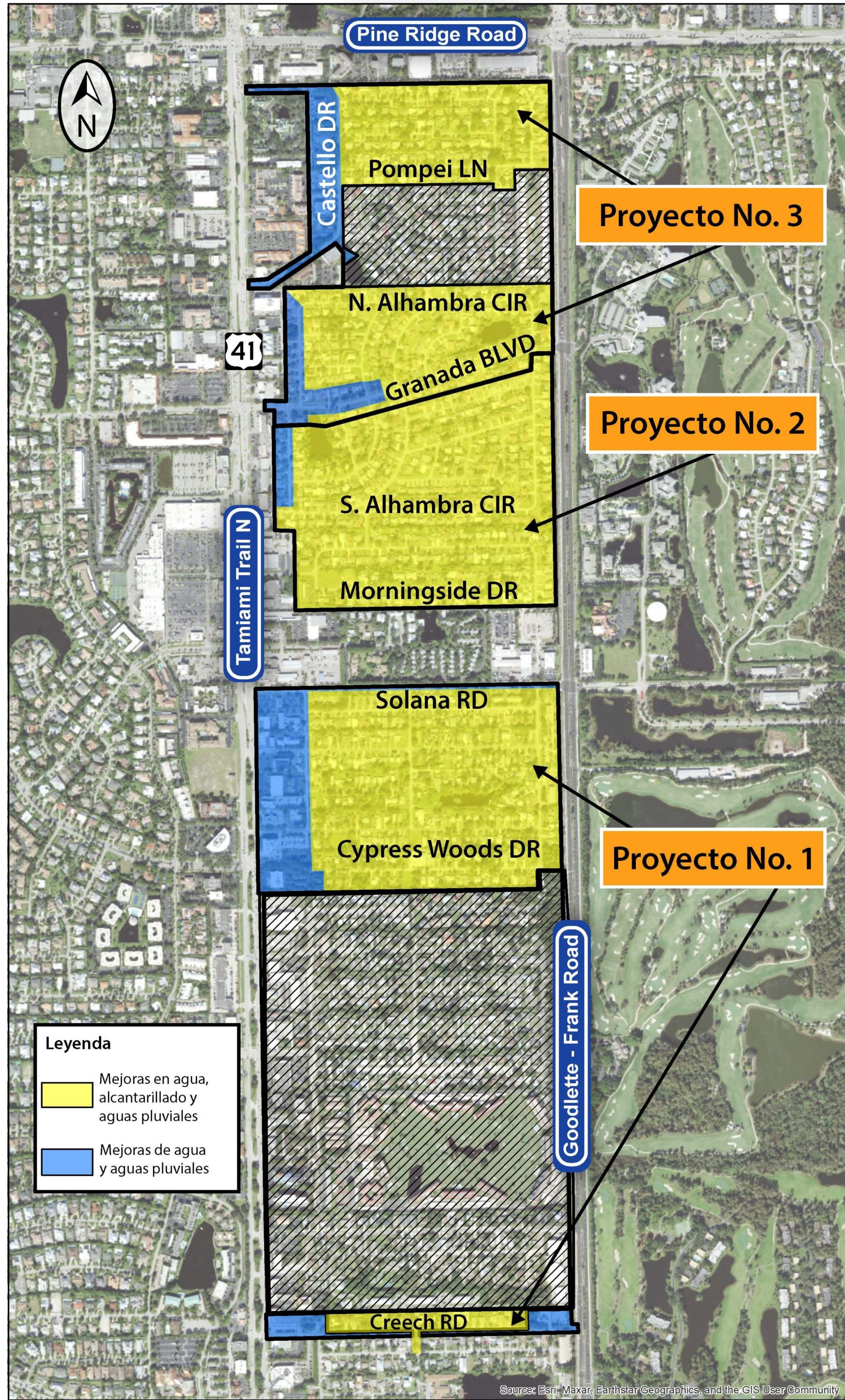 El Proyecto No. 1 incluye propiedades que anteriormentese se consideraban como Áreas 3 y 6. Se espera que este proyecto será completado primero para evitar conflictos con El Proyecto De Mejoras de la zanja ubicada a lo largo de Goodlette-Frank Road.